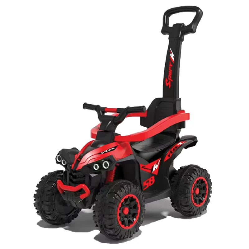 Équipé d’une poignée de guidage amovible, de protections latérales, d’un volant musical avec klaxon et d’un espace de rangement sous le siège, il garantit confort et amusement au quotidien.