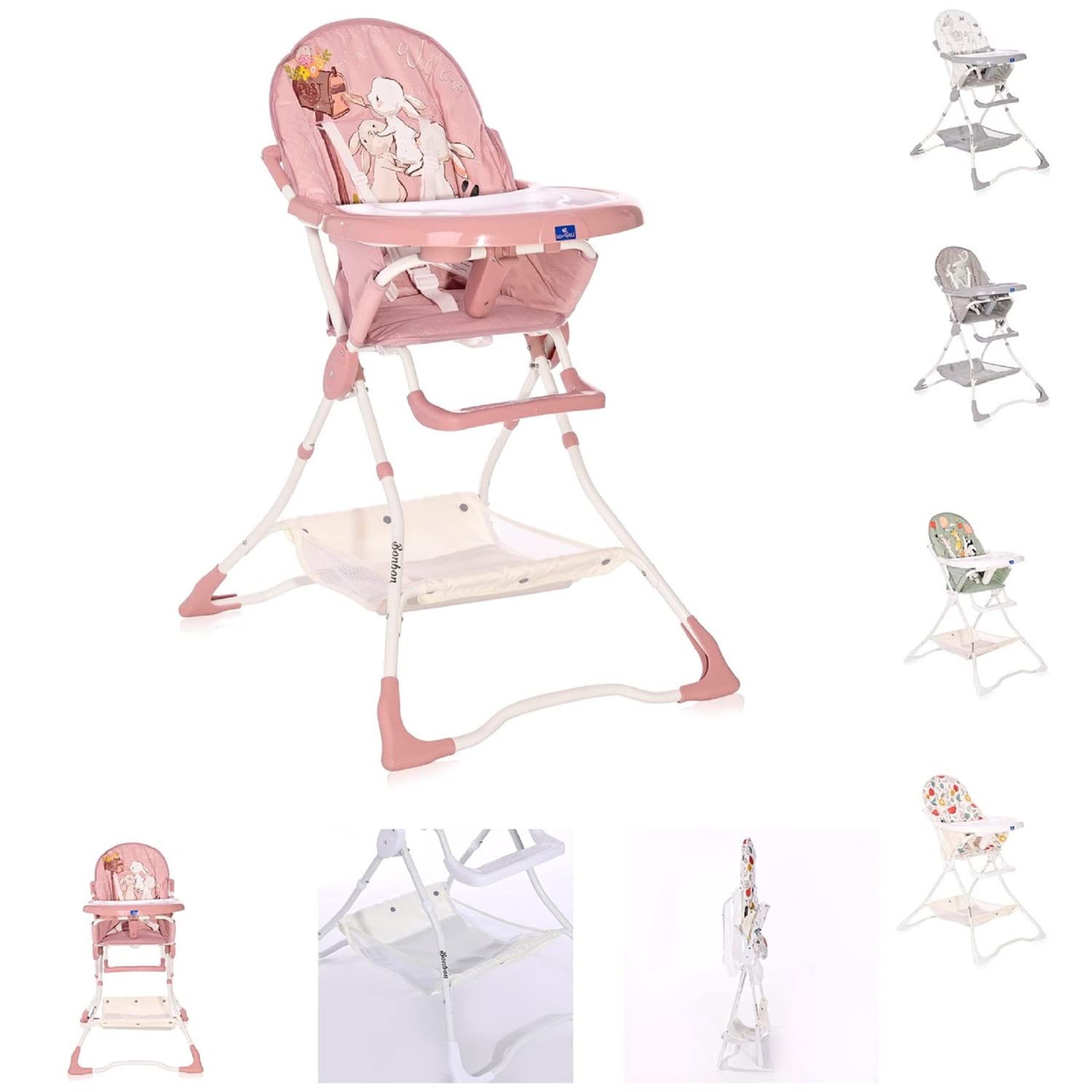 Chaise haute pour bébé, pratique et confortable, avec plateau amovible et harnais de sécurité. Idéale pour accompagner le bébé pendant les repas.